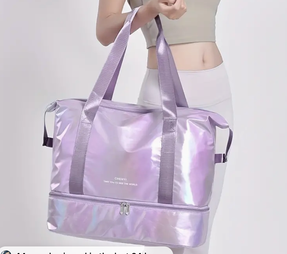 “NeverEnding” Travel Bag with Shoe Compartment or Expandable Bottom Integrated sleeve slides onto the, luggage handle making life simple. Discreet back zip for your Phone, ID and Passport. Perfect bag under your seat, yoga, hospital or the beach!